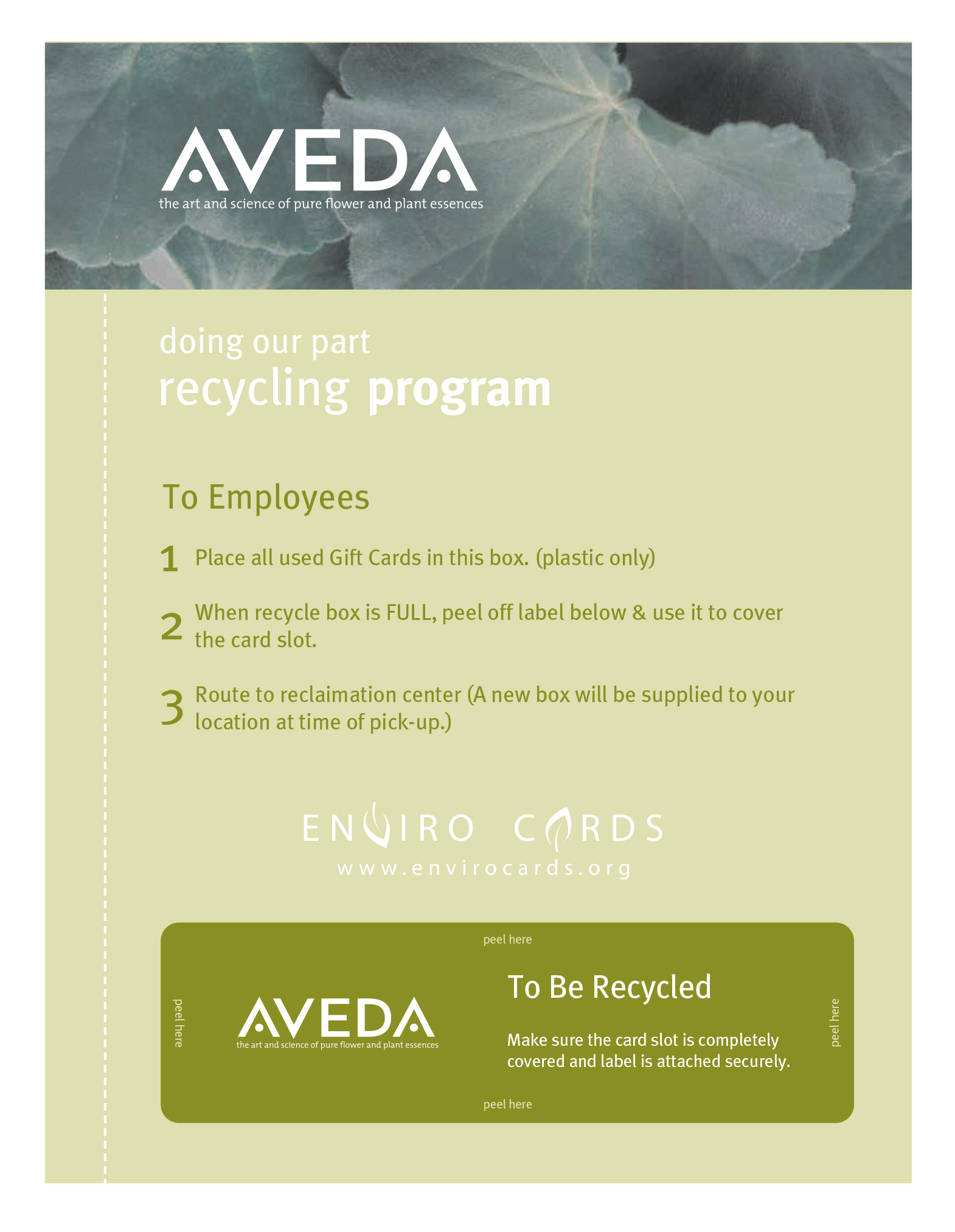 Gift card recycling program created for AVEDA to recycle their gift cards.