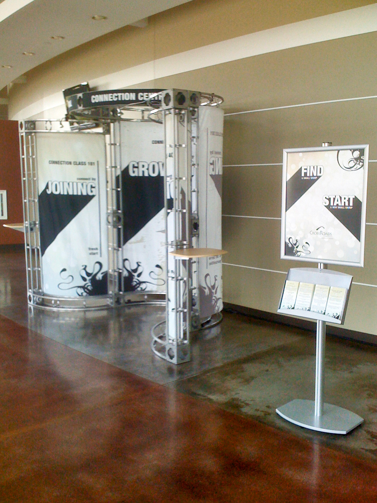 Booth design, logo creation, and layout for Crossroads Fellowship's class called Connection 101.