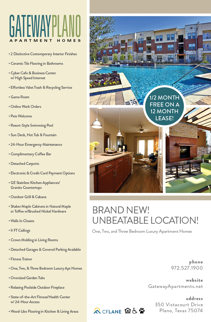 Design, layout, and concept for an apartment complex in Plano called Gateway Plano.