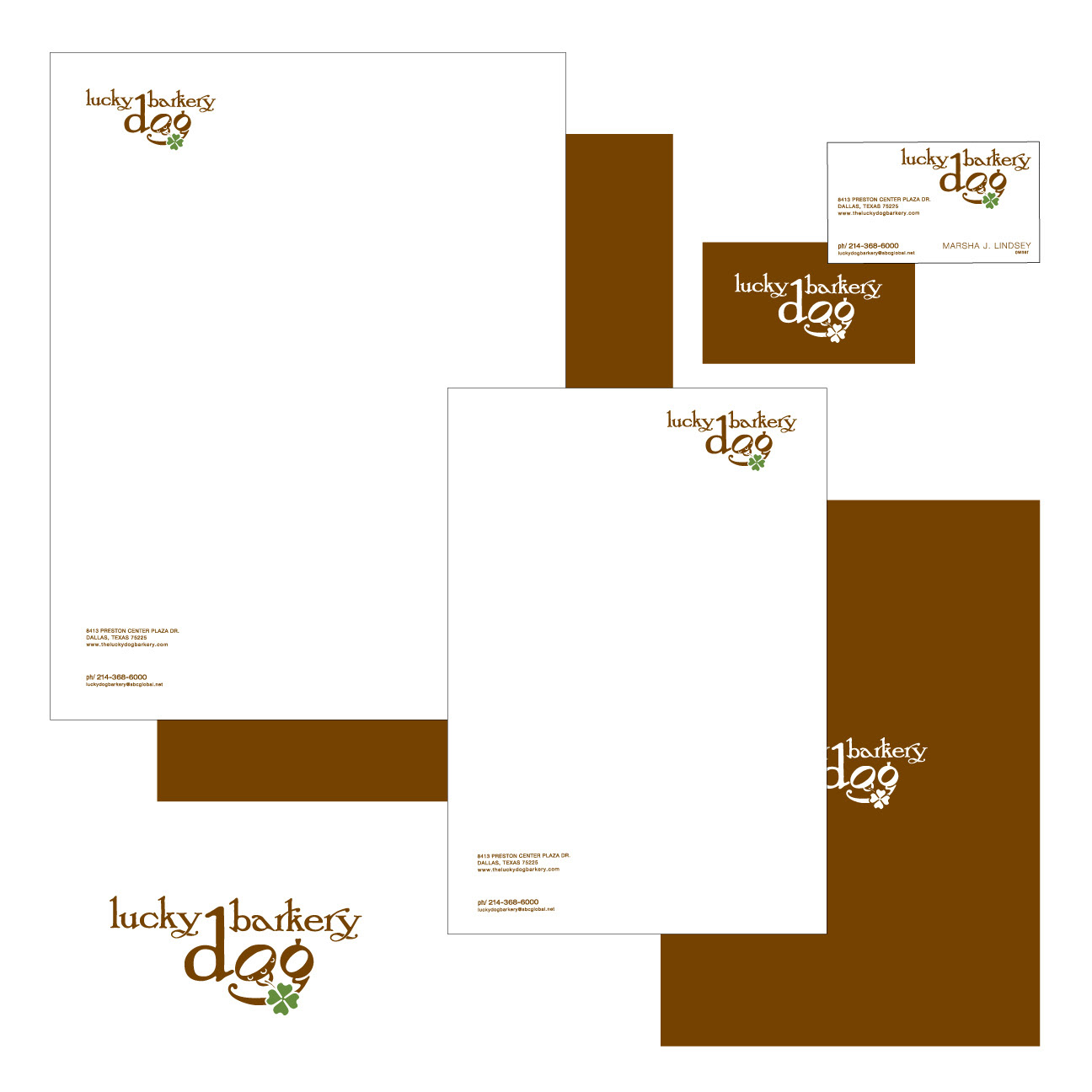 Identity design for a high-end dog boutique called Lucky Dog Barkery.